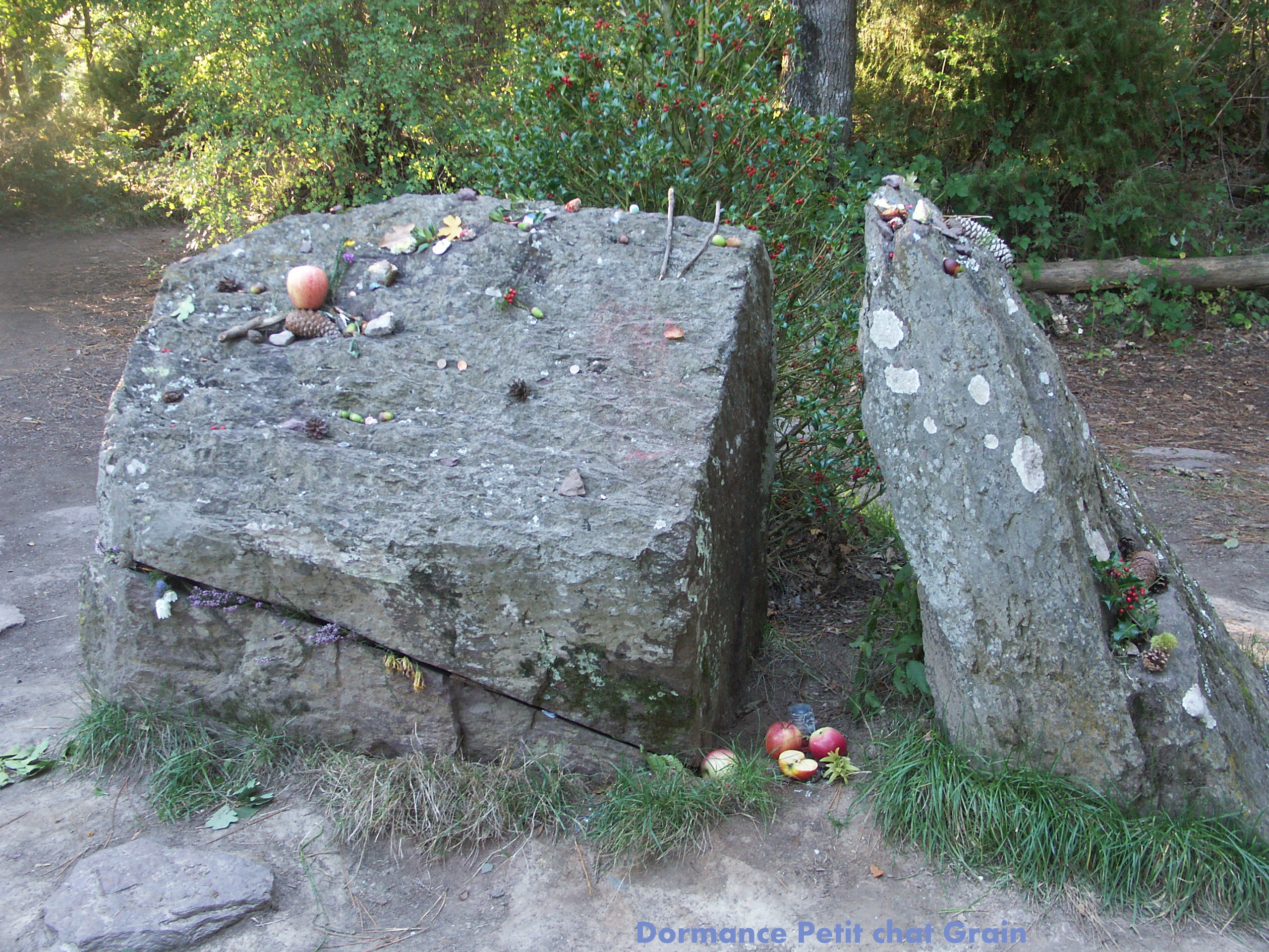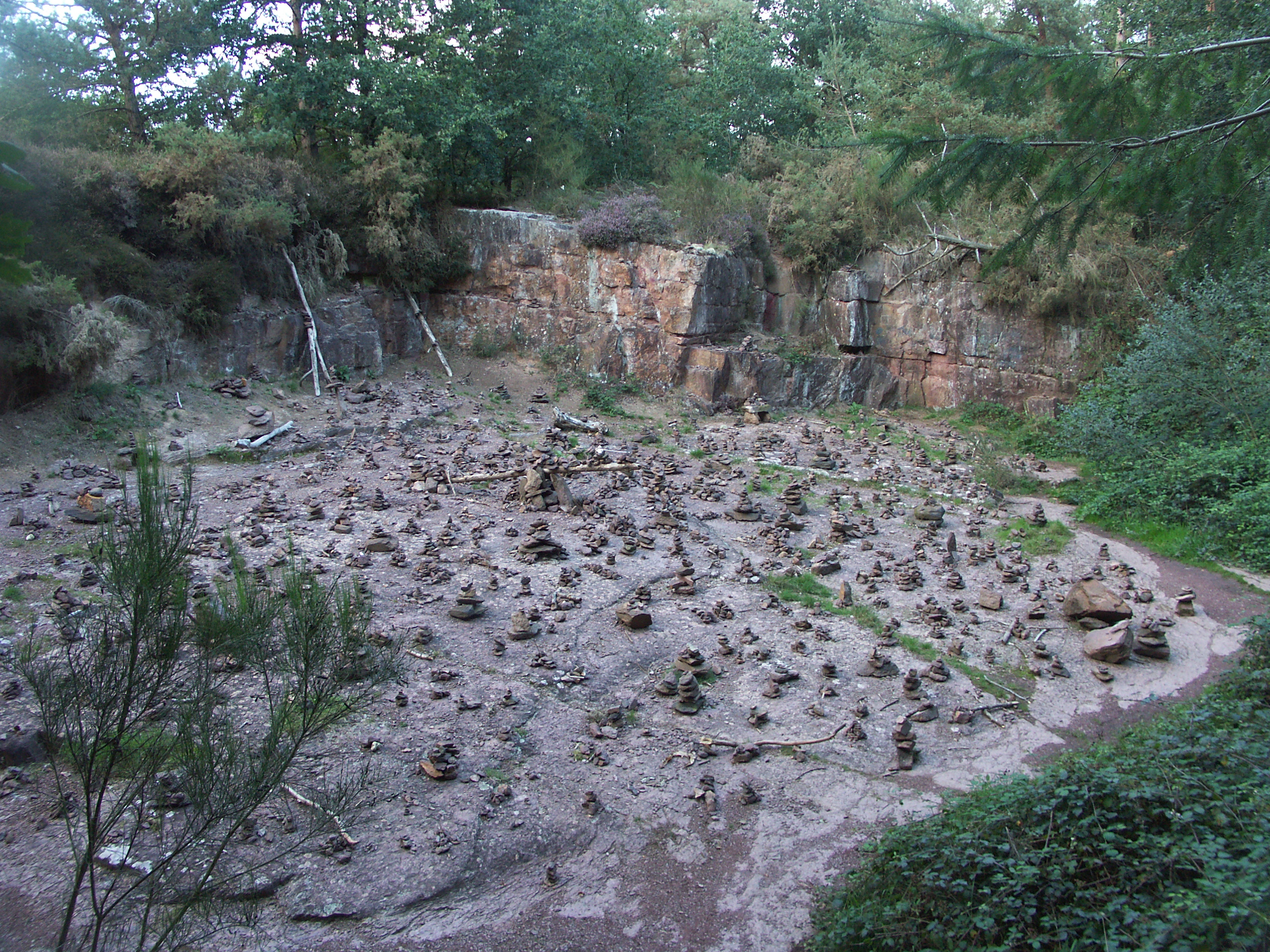 Et enfin Brocéliande , la belle ! Tant rêvée, tant convoitée…j’y étais enfin ! Et j’y retournerai, pour m’y perdre et sortir des sentiers battus. Les sens en émois, et le coeur ouvert à 100 %, certains de ces lieux dégageaient une force incroyable, et pourtant nous sommes allés sur les plus touristiques. La tombe de Merlin parée d’offrandes et de petits mots, la fontaine de Jouvence (je ne peux pas le prouver par photo, car je n’assume pas ma tête à côté de la fontaine), et un lieu très mystérieux , vraiment impressionnant, remplit de cairns. Peut être était ce le Val sans retour ?