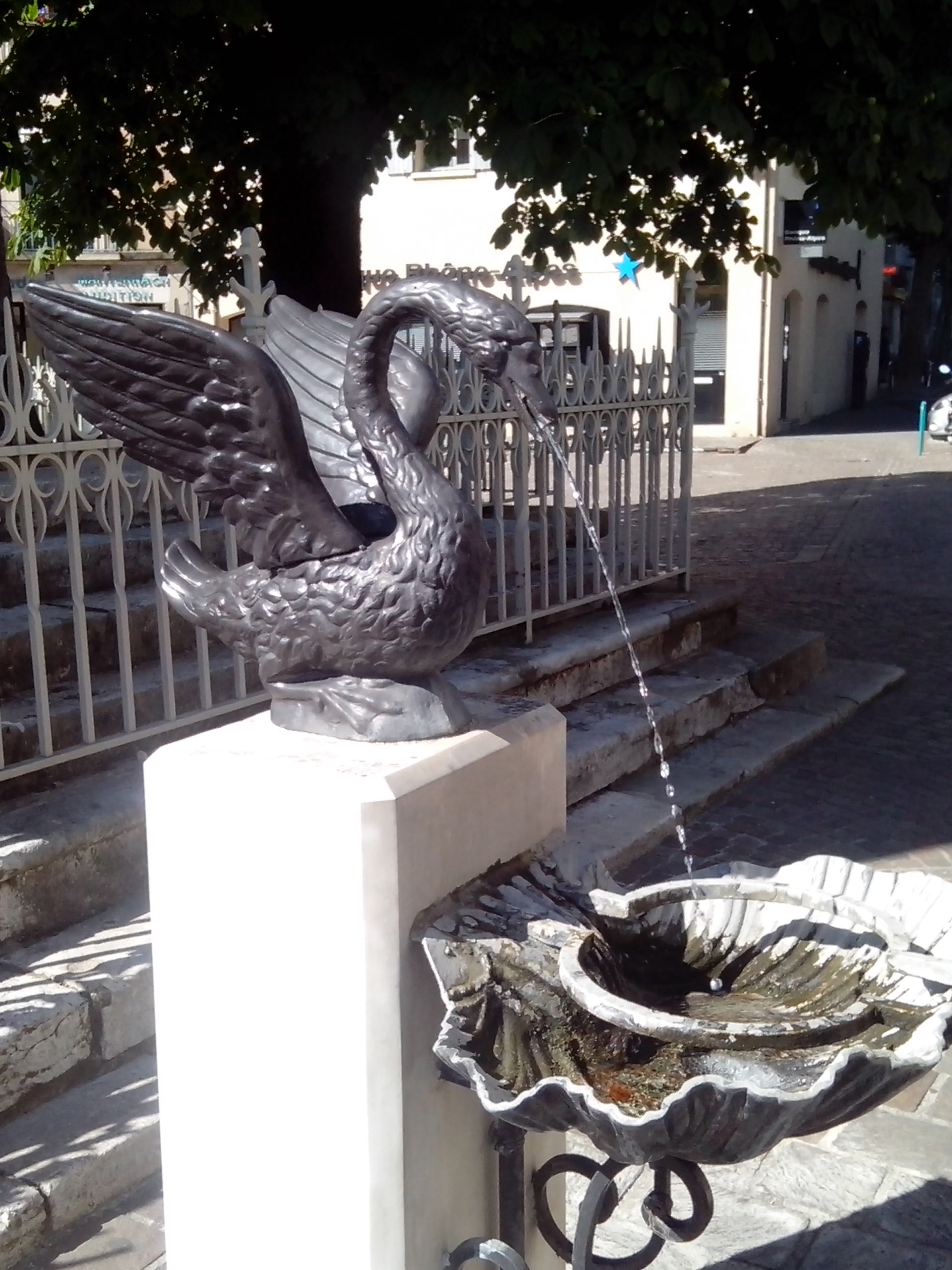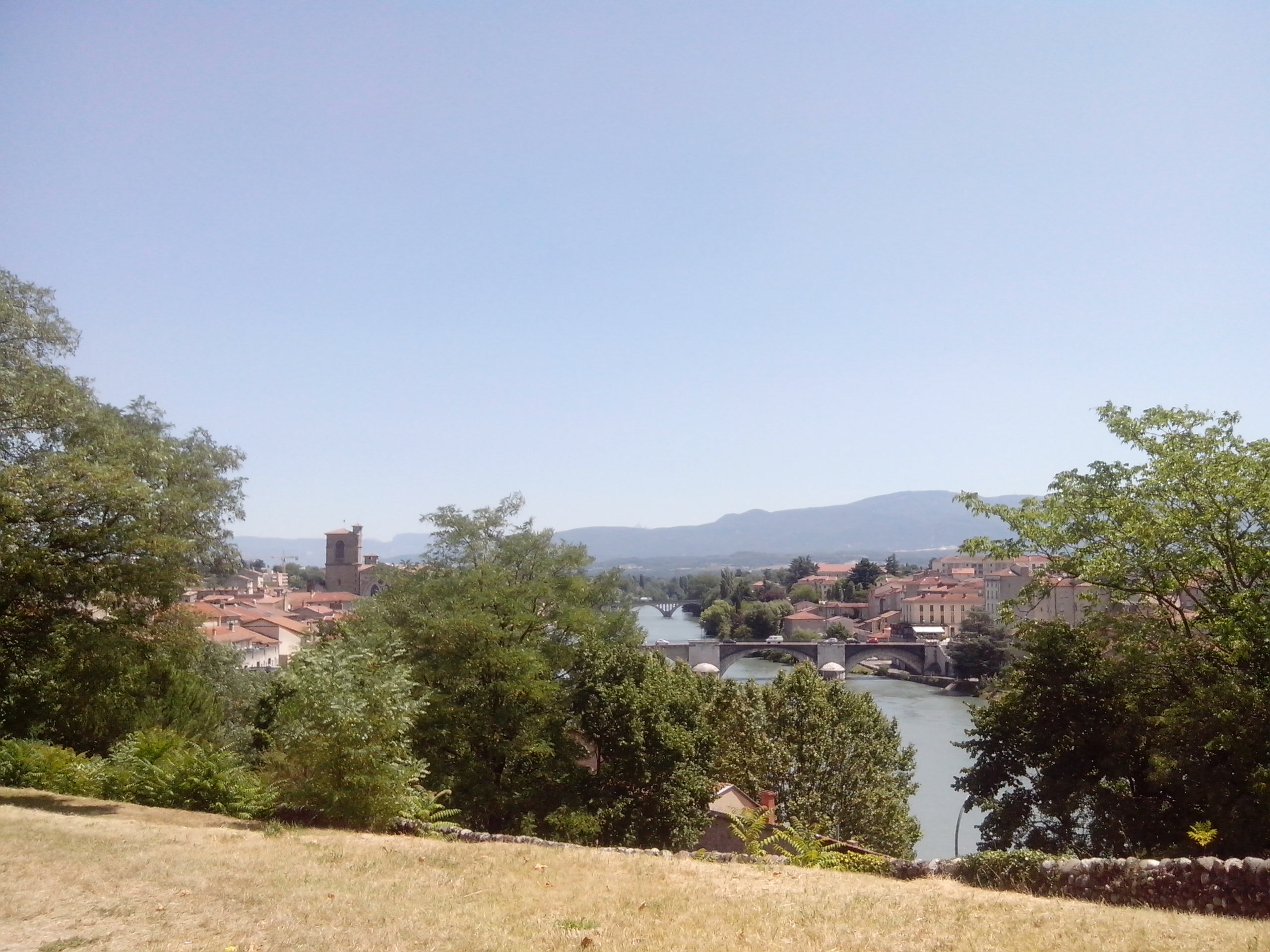 Après  cette bonne assiette, j’ai fait une balade digestive (sous un soleil brûlant) dans les rues anciennes de Romans,longeant l’Isère; traversant l’ancien quartier des tanneurs, passant par la rue des artistes où les galeries d’art côtoient des créateurs d’éventails. Puis je suis montée jusqu’au parc F. Mitterrand qui surplombe la ville. Un endroit chouette, qui mériterait d’être mieux mis en valeur.