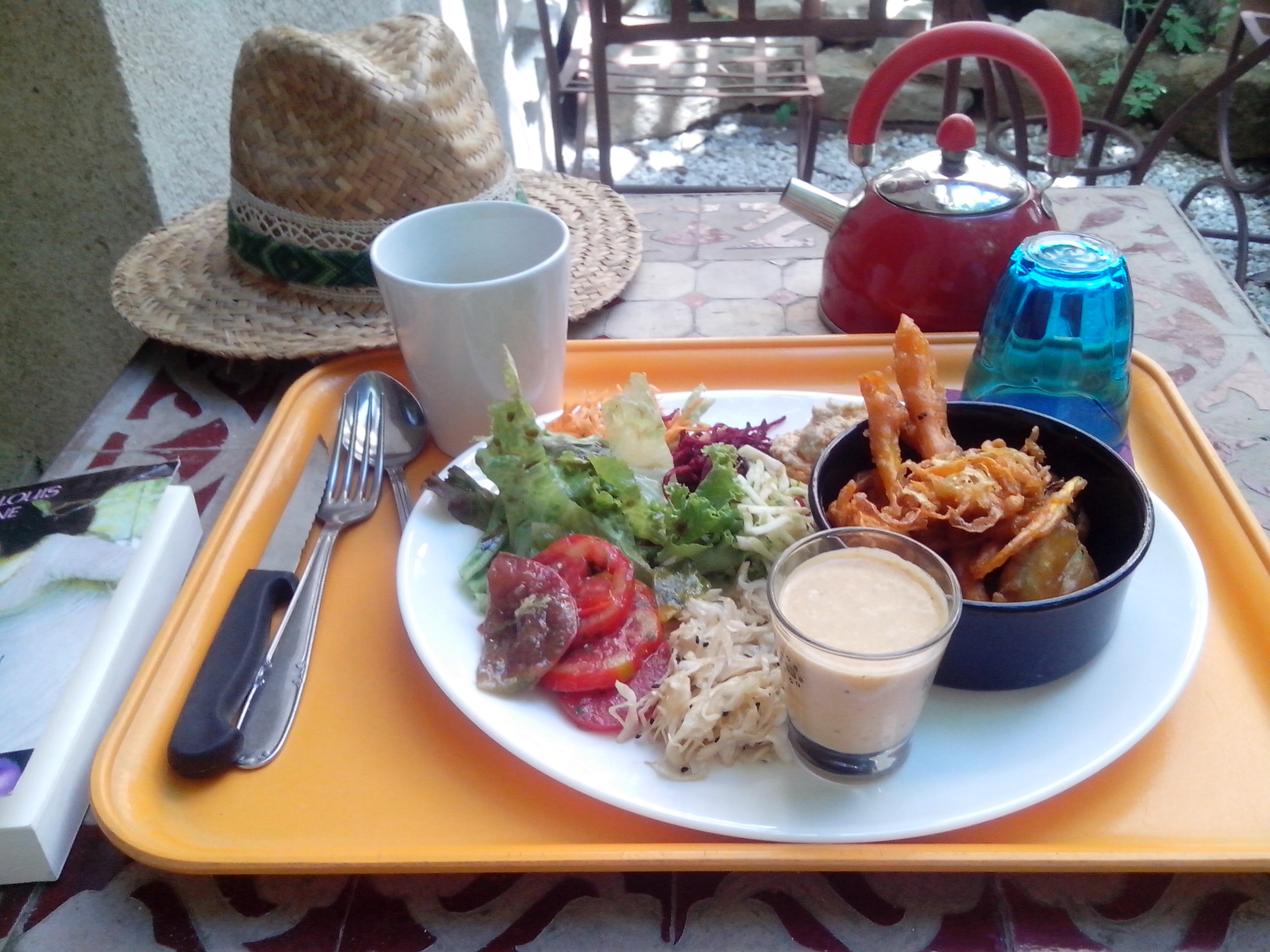 Pour la pause repas, je me suis rendue au restaurant bio Un pas de côté 18 rue de la banque. Qui propose en été des repas uniquement végétariens. Je me suis régalé ! En m’y rendant, malgré le super disquaire Disqu’art place de la fontaine couverte, j’ai fait le triste constat que le centre ville était déserté , beaucoup de vitrines sont vides. Peut être est ce dû à la présence du Marques avenue ?