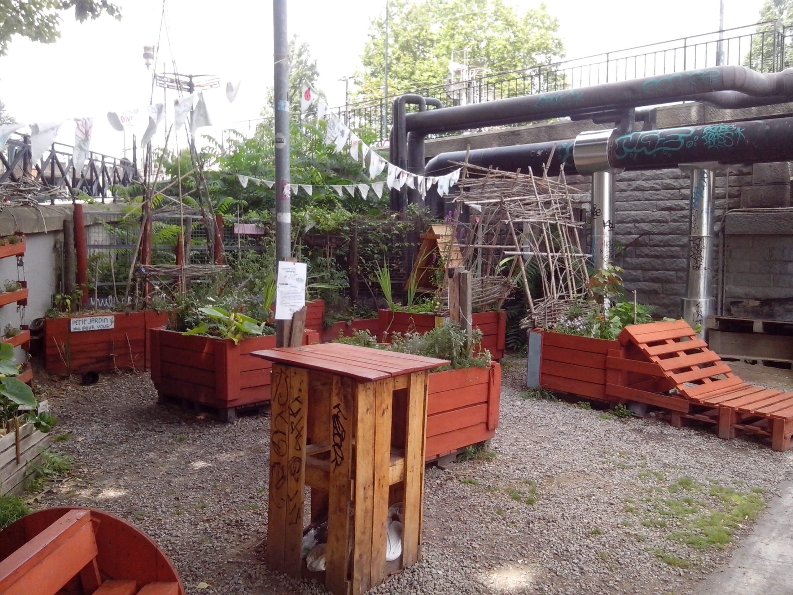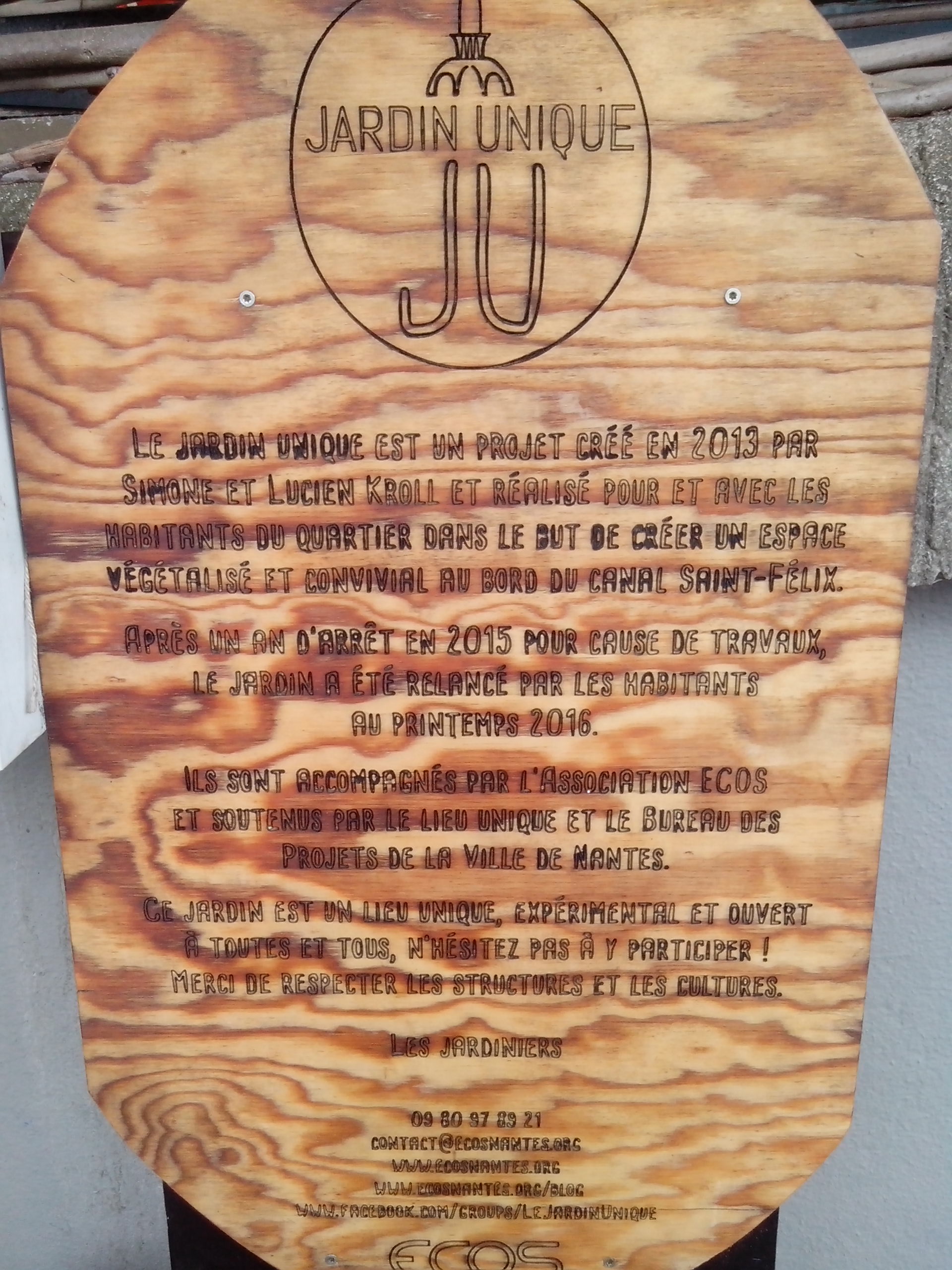 A peine garé à côté du Lieu unique, ancienne usine LU réaménagé en lieu d’expo, librairie d’art, restaurant…Je suis tombée sur un petit jardin urbain partagé.