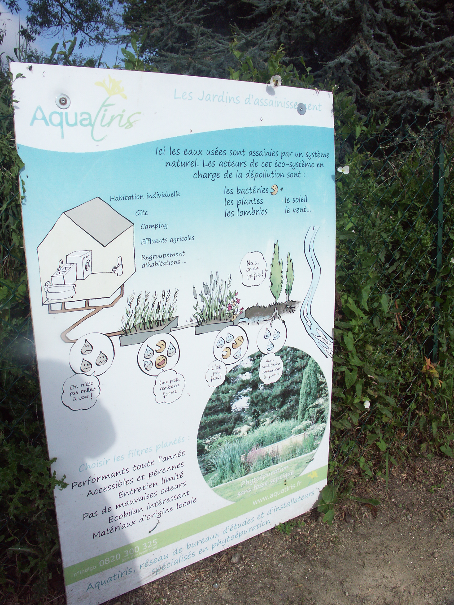En redescendant vers La Rochelle. J’ai fait une courte étape à Bécherel (non loin de Rennes), un vrai coup de coeur pour cette cité du livre. Pas seulement pour toutes ces librairies peuplant la ville, mais pour l’ambiance qui s’y dégage et les belles façades. En m’y promenant, sur le sentier panoramique, j’ai eu la joie de voir qu’un.e habitant.e avait rendu son propre jardin , instructif pour les passants longeant son terrain. Des panneaux faits mains pour nommer chaque plante présente sur son bout de terre. Et pour finir, il y avait un panneau expliquant le système de filtrage naturel des eaux usées.