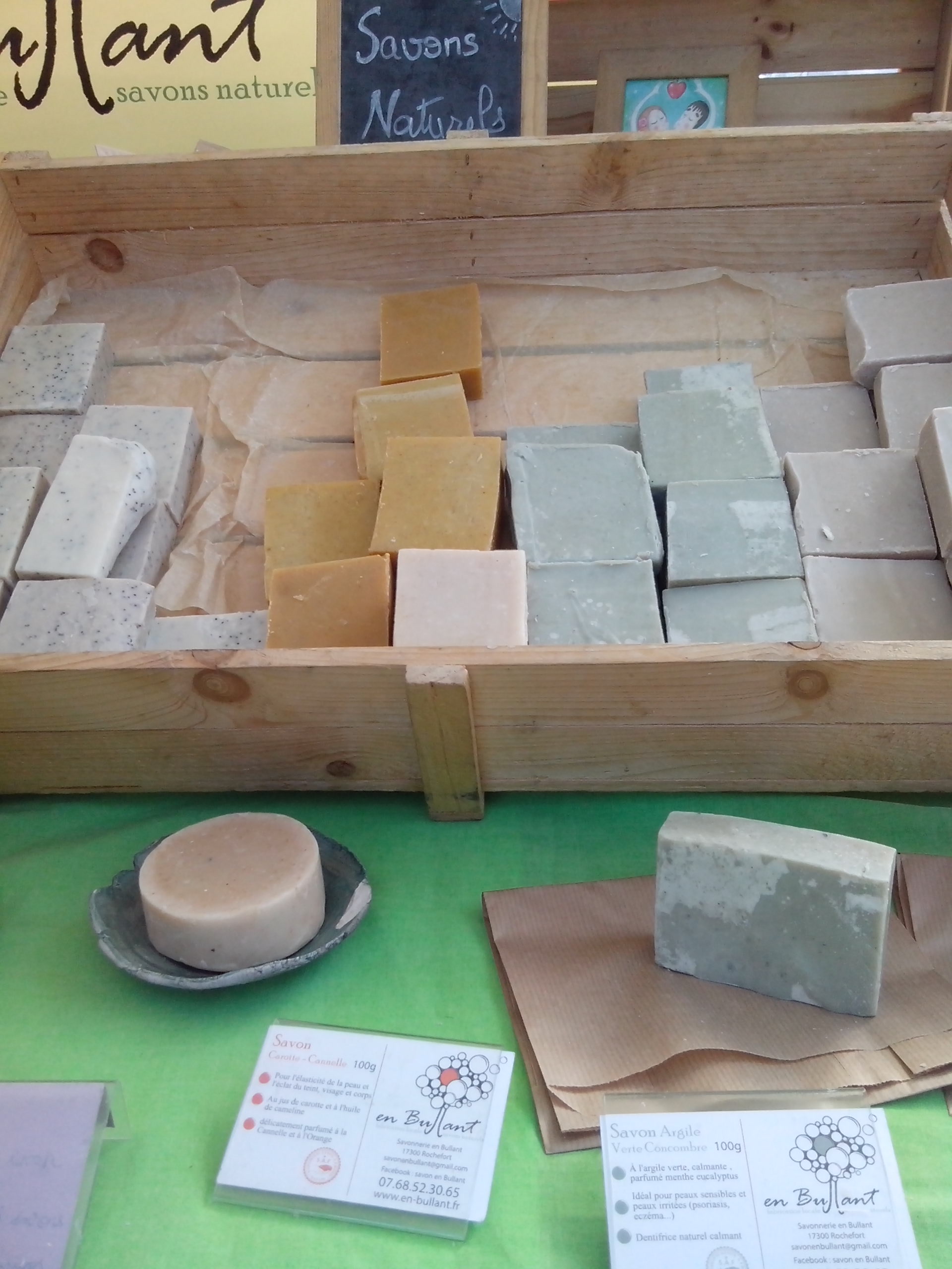Le soir même. J’ai campé dans le jardin d’amis d’amis , à Laleu, à la périphérie de la Rochelle. En accompagnant mon hôtesse au marché de La Palice , j’ai pu voir le jardin en permaculture fait par les élèves de l’école de la ville. Ecole très engagée. J’ai aussi croisé des savons artisanaux naturels fabriqués à Rochefort En bullant, mais j’ai réussi à résister 😀
