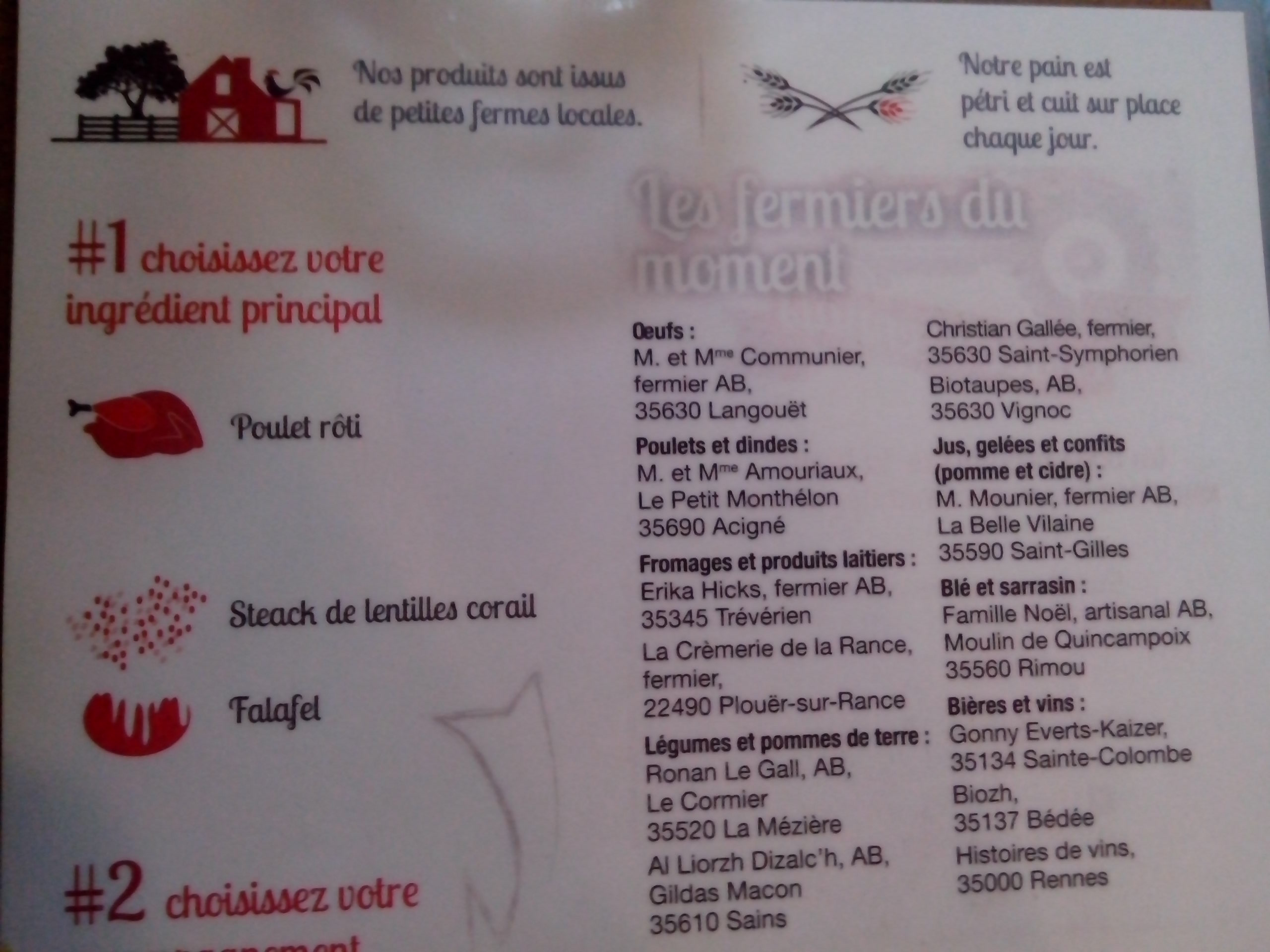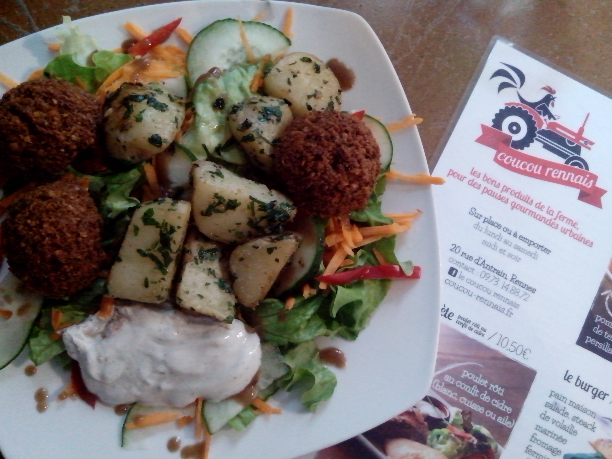 Je me suis rendue dans un restaurant militant qui propose des plats élaborés à partir de produits de fermes locales parfois bio, un vrai régale ! Le Coucou rennais.