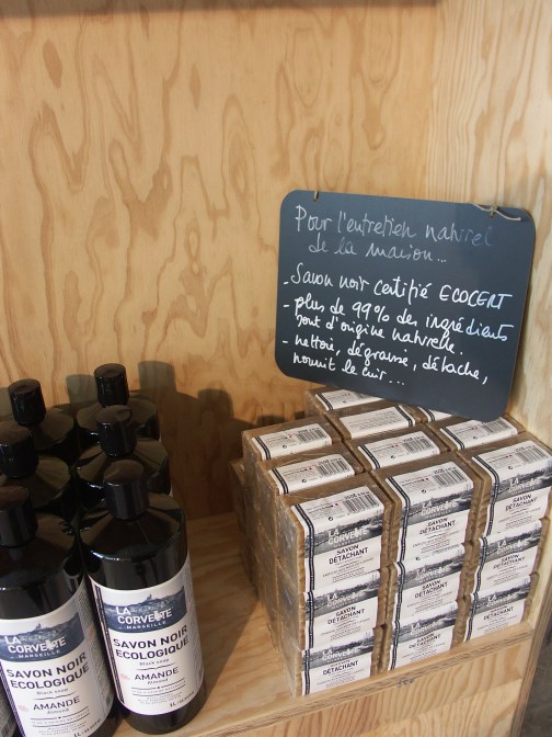 Je n’étais pas trop dépaysée question produits d’entretien, car dans mes produits écolo-minimaliste pour le ménage. Se trouve le savon noir. Un des produits naturels,des plus efficaces . Aux multiples usages , dégraissant, il nettoie les pinceaux de peinture, comme combat les pucerons, et sert de shampoing aux toutous élégants. J’utilise également des copeaux de savons de Marseille pour réaliser ma lessive maison . Hyper fastoche ! Mais je vous ai déjà donné la recette sur le blog 😉