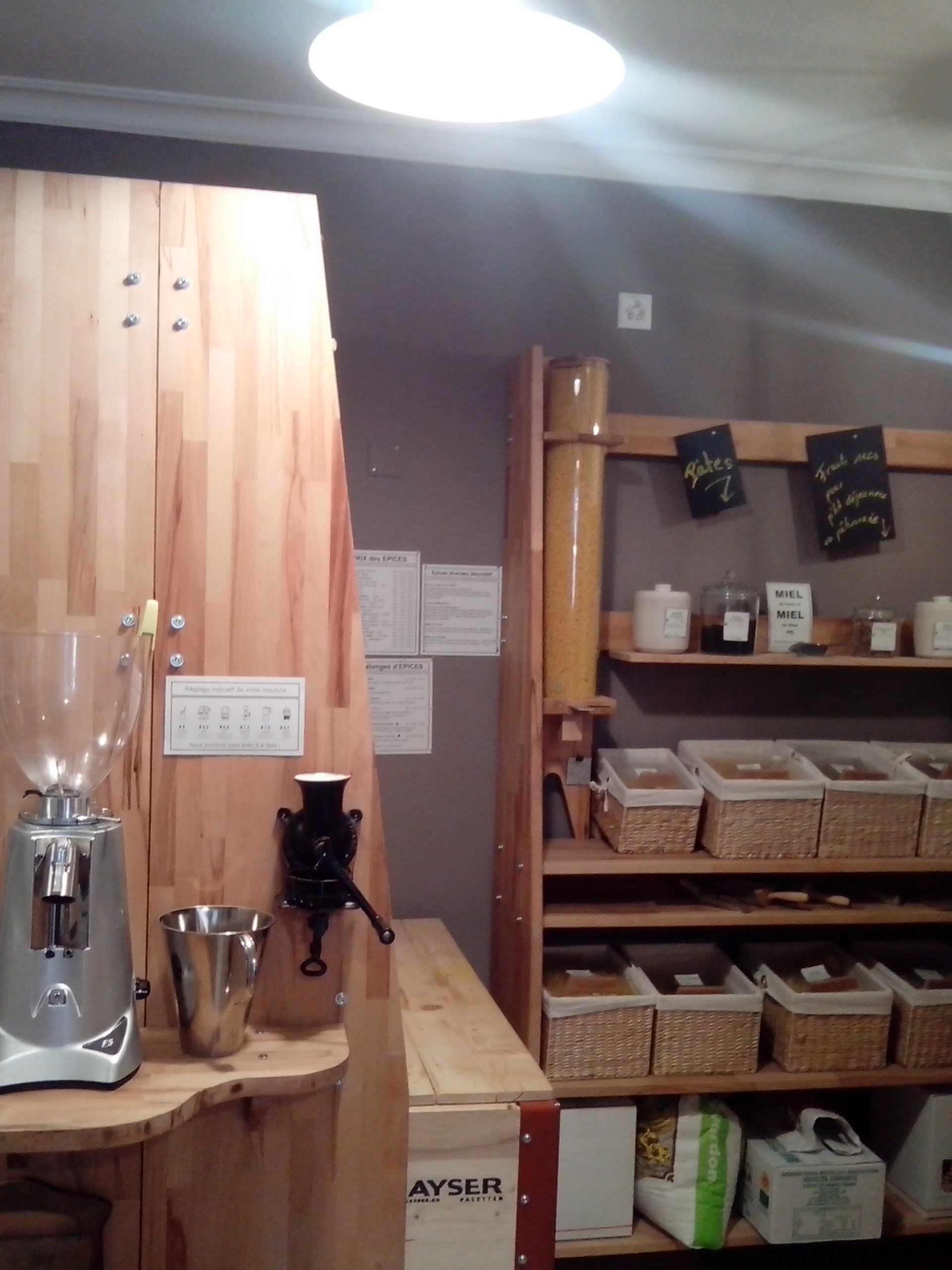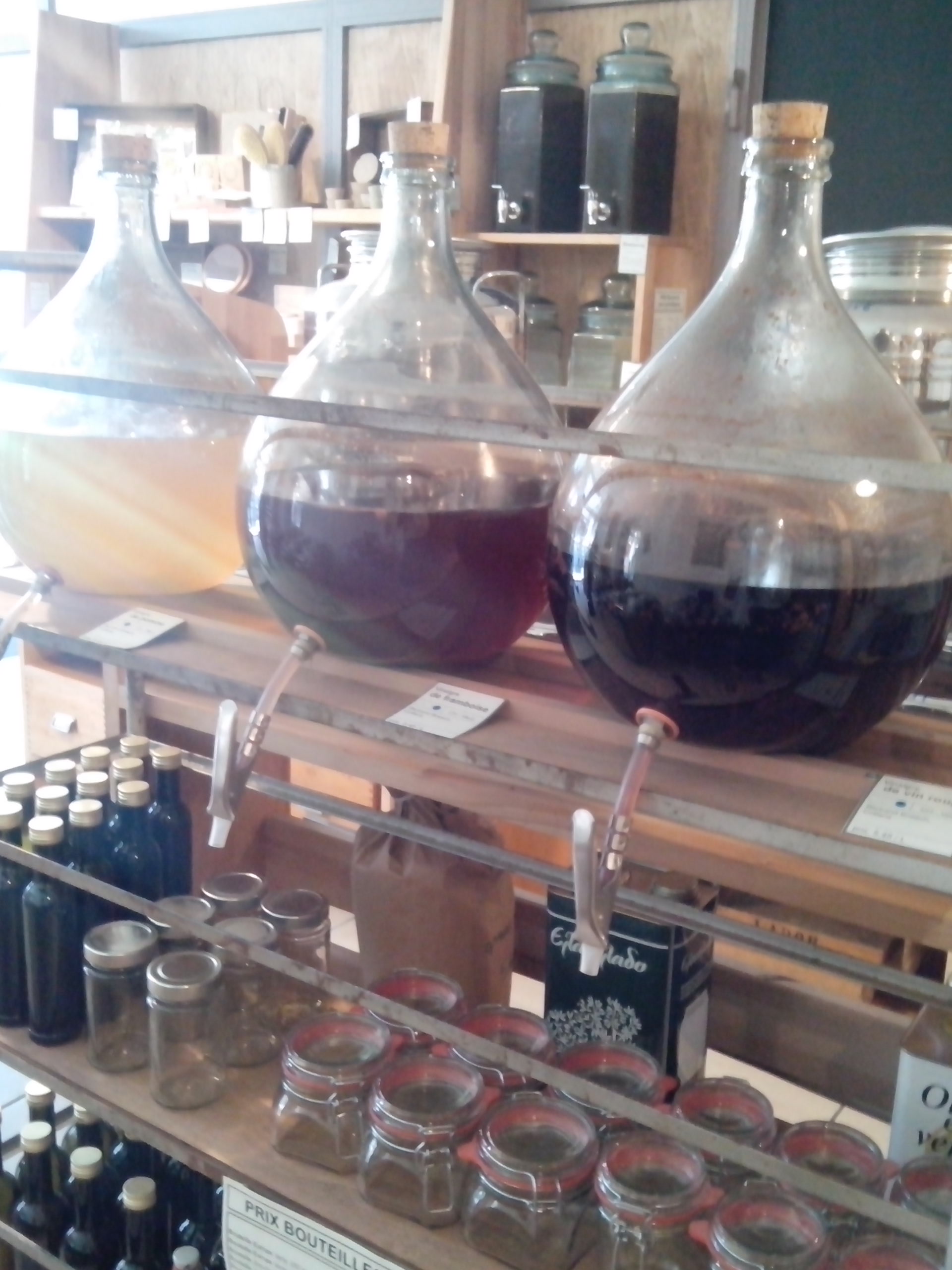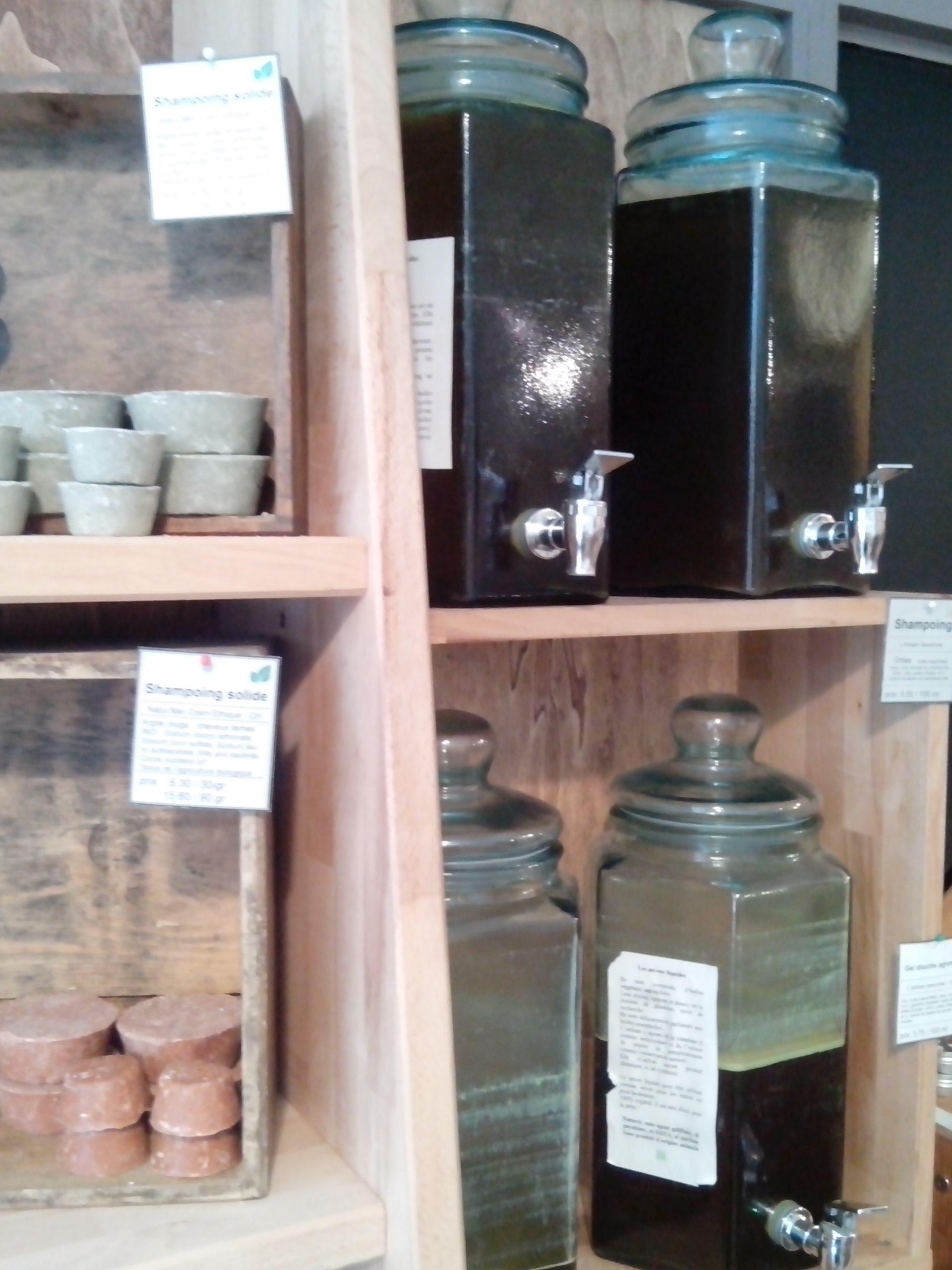 Cette épicerie est très belle, c’est le propriétaire qui a fabriqué tous les meubles présents dans la boutique. On y trouve de tout, le zéro déchet est vraiment le maître mot, venez avec vos pots , sacs etc Même les pots des cosmétiques sont consignés. J’ai pour ma part craqué pour une crème pour le visage locale de Sonia Pitton, à la compo super clean, et des biscuits sans gluten pour mon repas et les petits creux à venir. Sur le marché local j’ai trouvé du pain sans gluten, où la boulangère m’a dit que je pouvais réutiliser l’emballage en bois et le papier cuisson dedans pour faire des gâteaux ( jusqu’à ce que le papier noircisse). Et une artichonade artisanale à tartiner ! Sur le chemin du centre thermal, j’ai découvert une autre épicerie de vrac Oil and more rue de la plaine, et quelques mètres plus loin le Tonneau verre ,qui vend des bières, vin, sirop, jus etc le tout dans des verres consignés, où j’ai pris un maté pétillant. On y trouve également d’anciennes bouteilles recyclées et retravaillées artistiquement. Dans cette même rue, vous trouverez une épicerie fine de produits locaux appelée La Ferme.