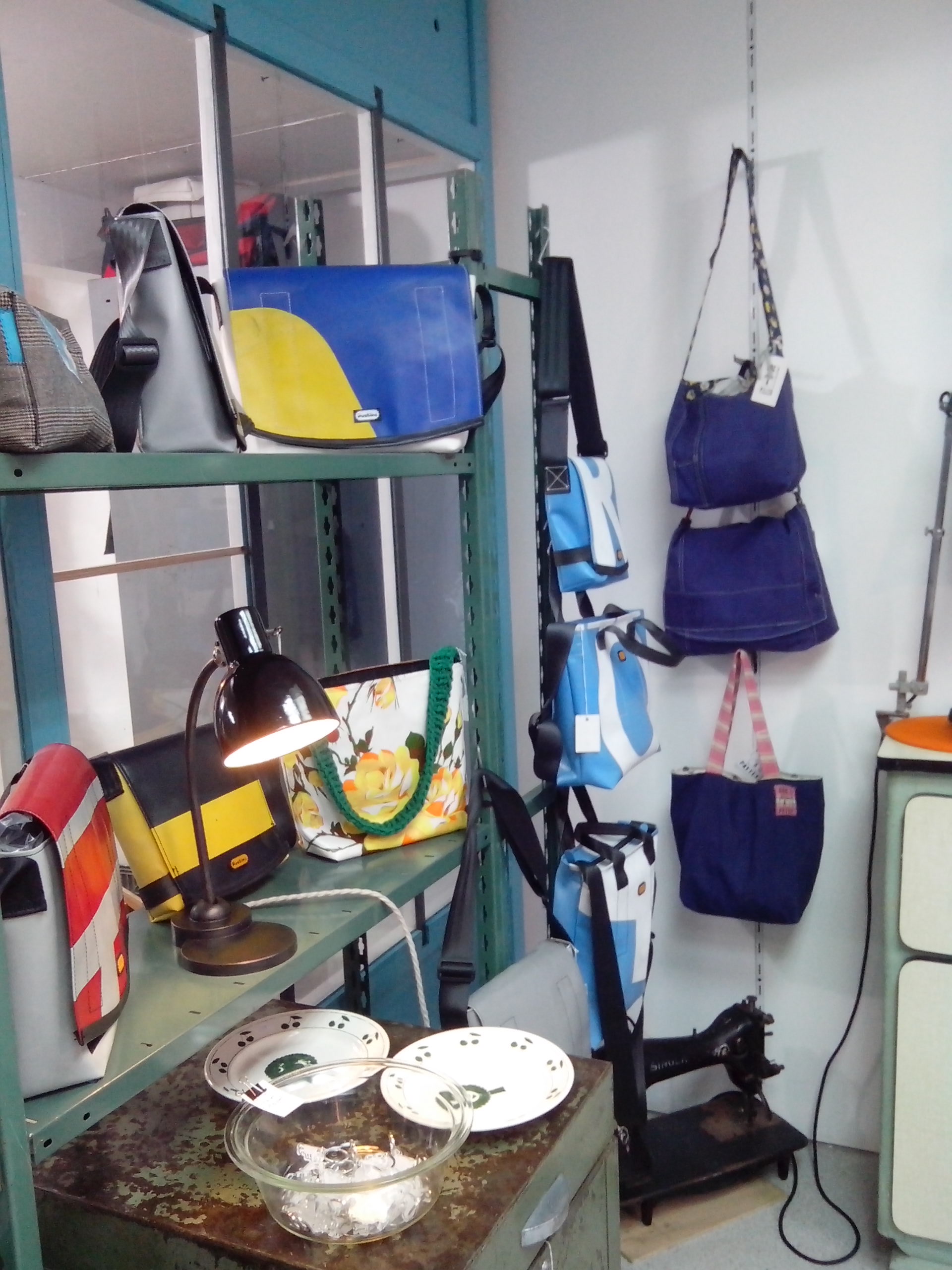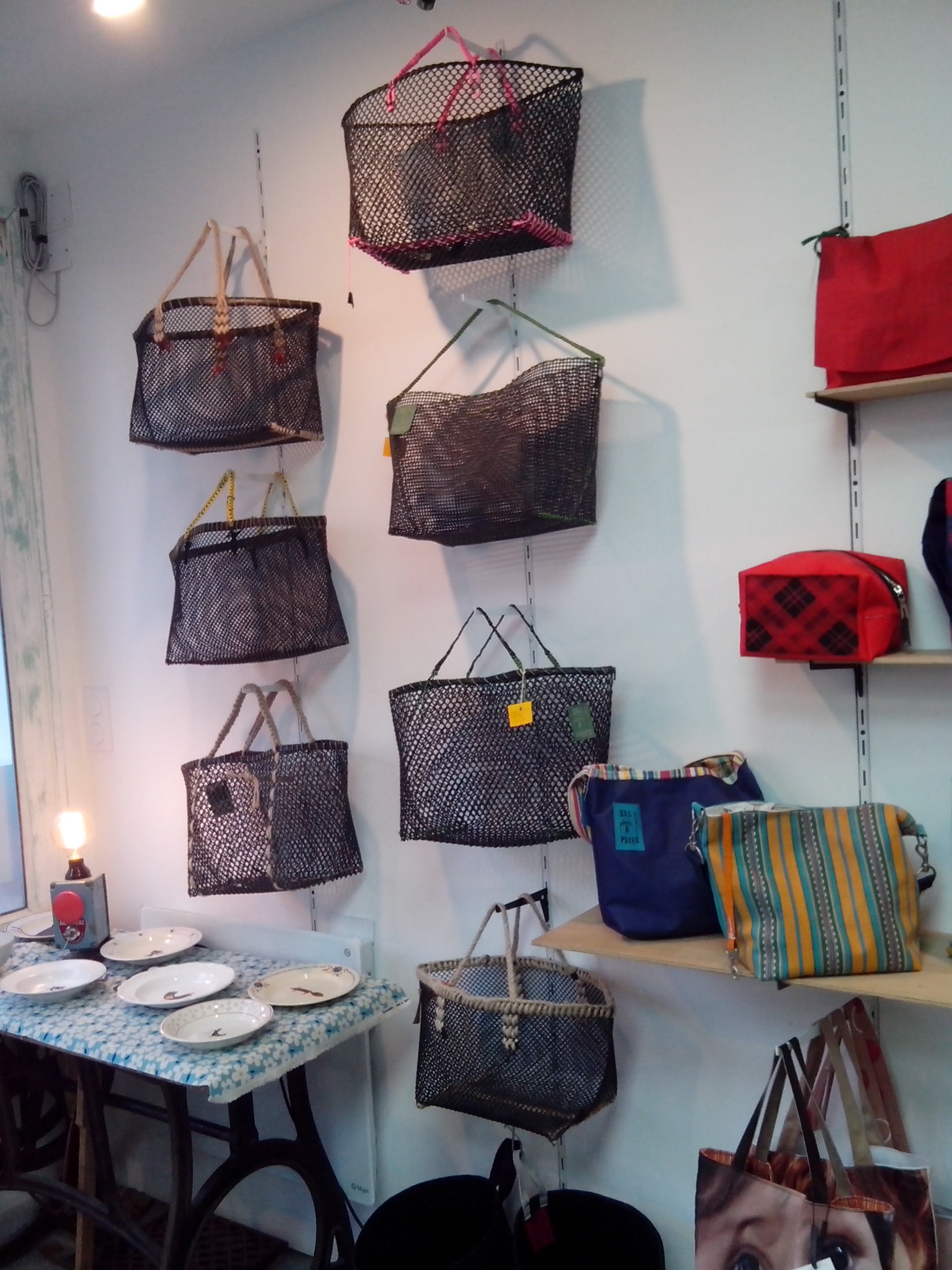 Un de mes vrais coup de coeur est l’atelier Rustine.51 rue Traverse Un créateur qui n’utilise que des matériaux de récupération. Où les bâches de camions deviennent sacs, les toiles de tentes et les matelas pneumatiques se changent en tabliers, les assiettes retrouvent une seconde jeunesse grâce à des personnages amusants !