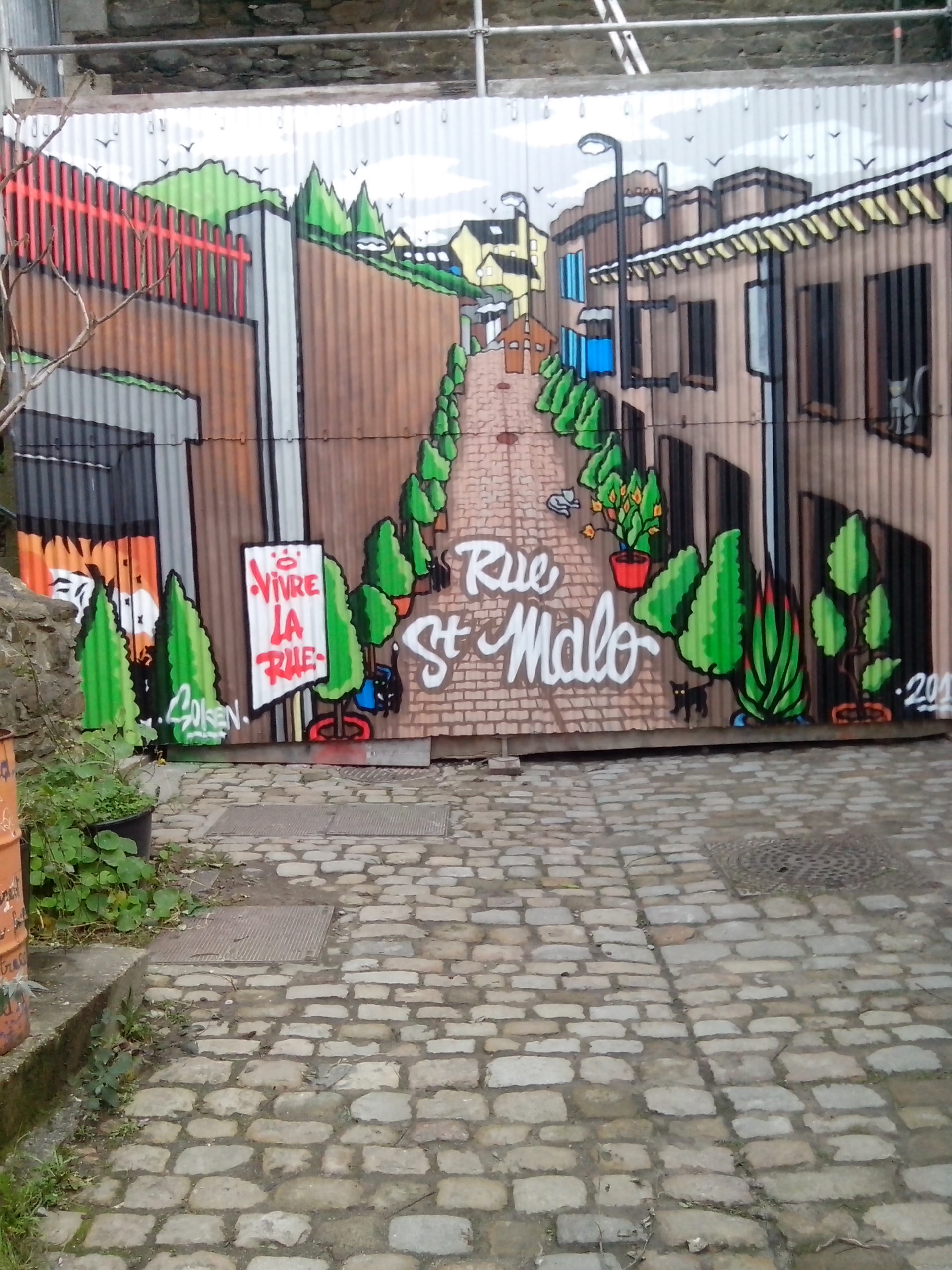 En sortant de cette incroyable médiathèque, j’ai découvert la plus ancienne rue de Brest, la rue Saint Malo, qui est aussi une rue artistique et à l’esprit alternatif. On y trouve même des toilettes sèches ! Au bout de cette rue, se situe un café culturel engagé du même nom que la rue, qui propose une bibliothèque de rue, des rencontres, concerts etc.