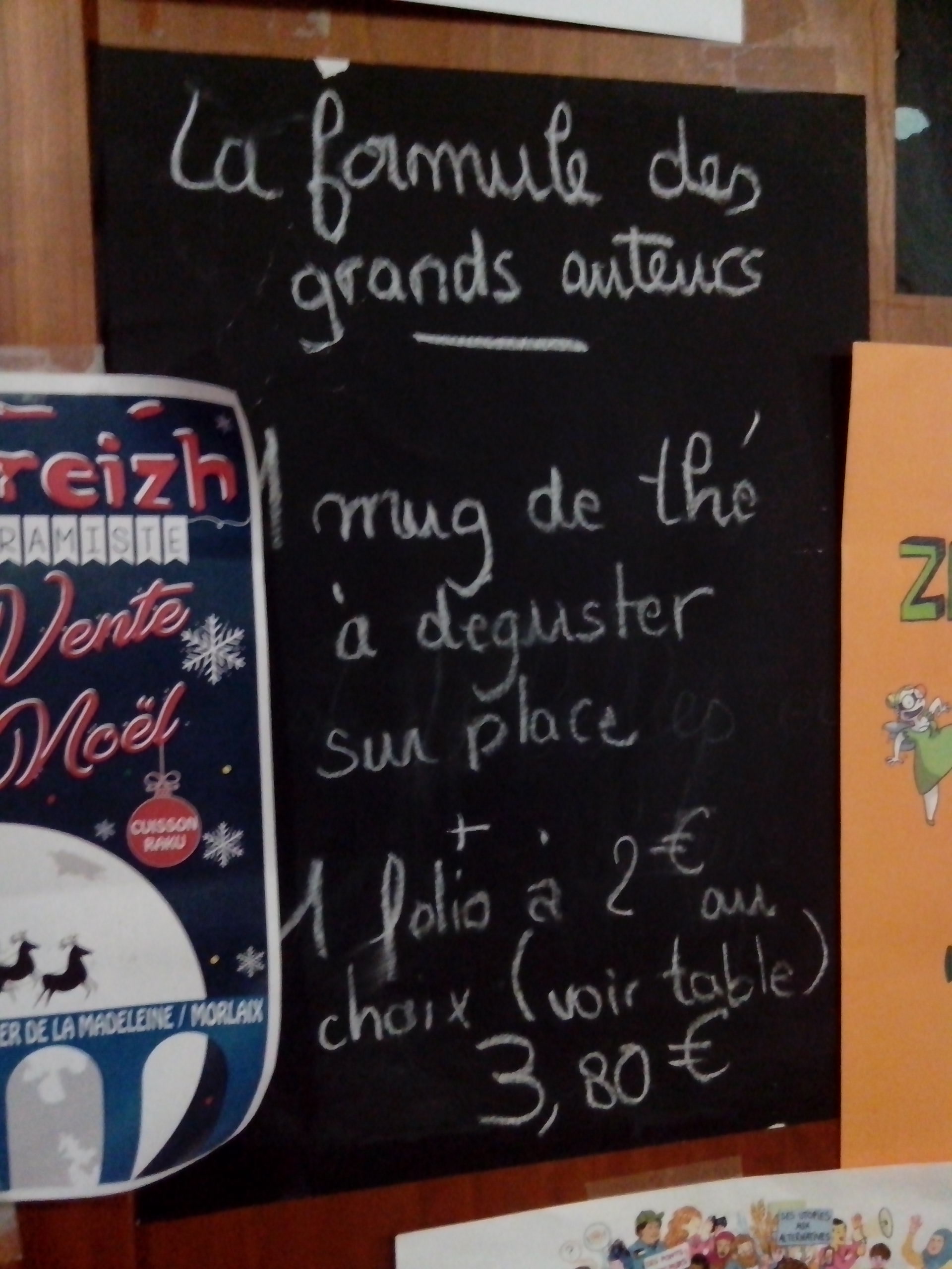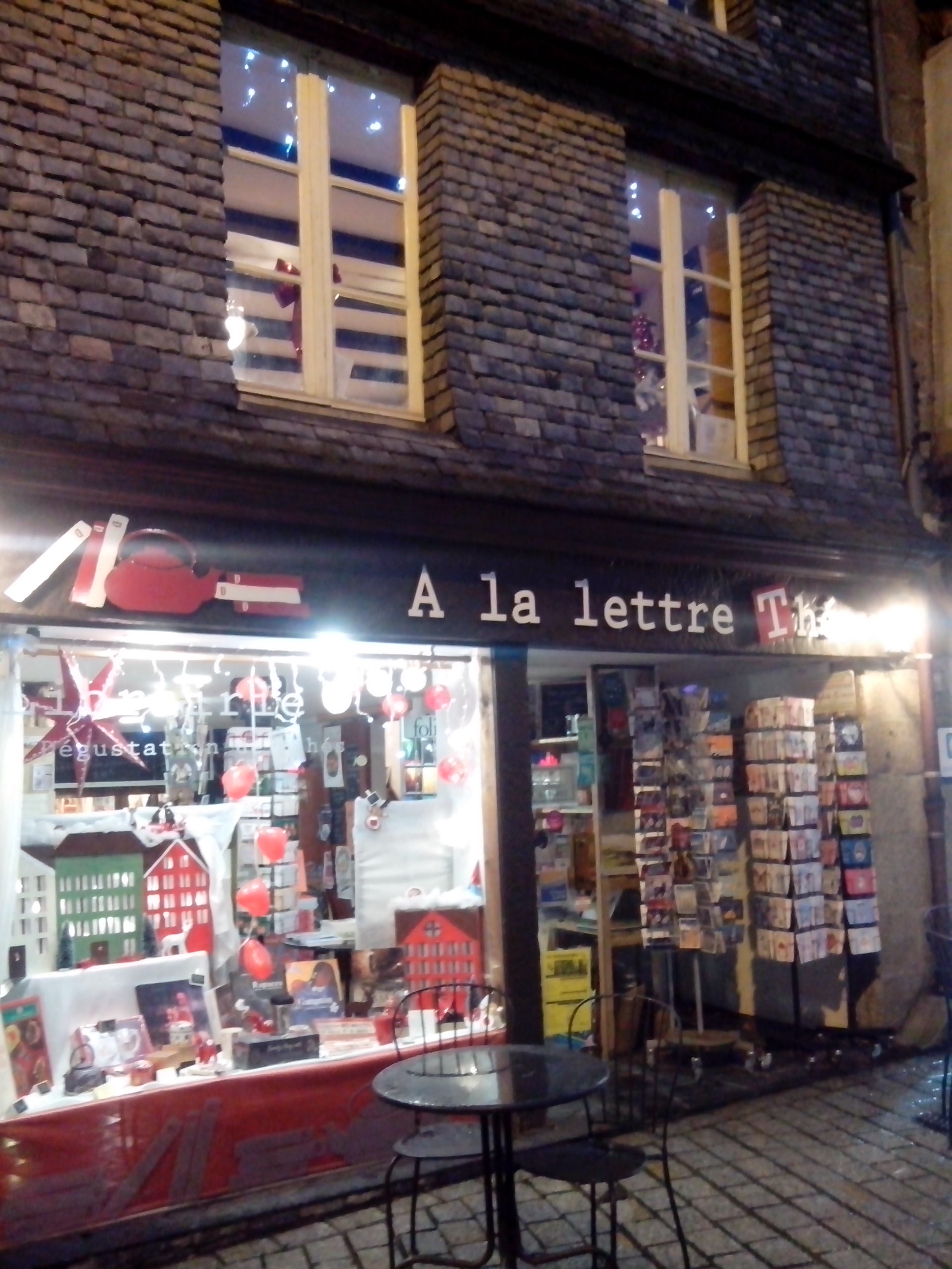 Le 1er lieu où je me suis rendue fut la librairie et salon de thé A la lettre Thé , un endroit super cosy avec une belle sélection littéraire. Avec un rayon de récits de voyage beaucoup trop tentant ! 🙂 J’y ai découvert les thés et tisanes bretons îlot_thé.