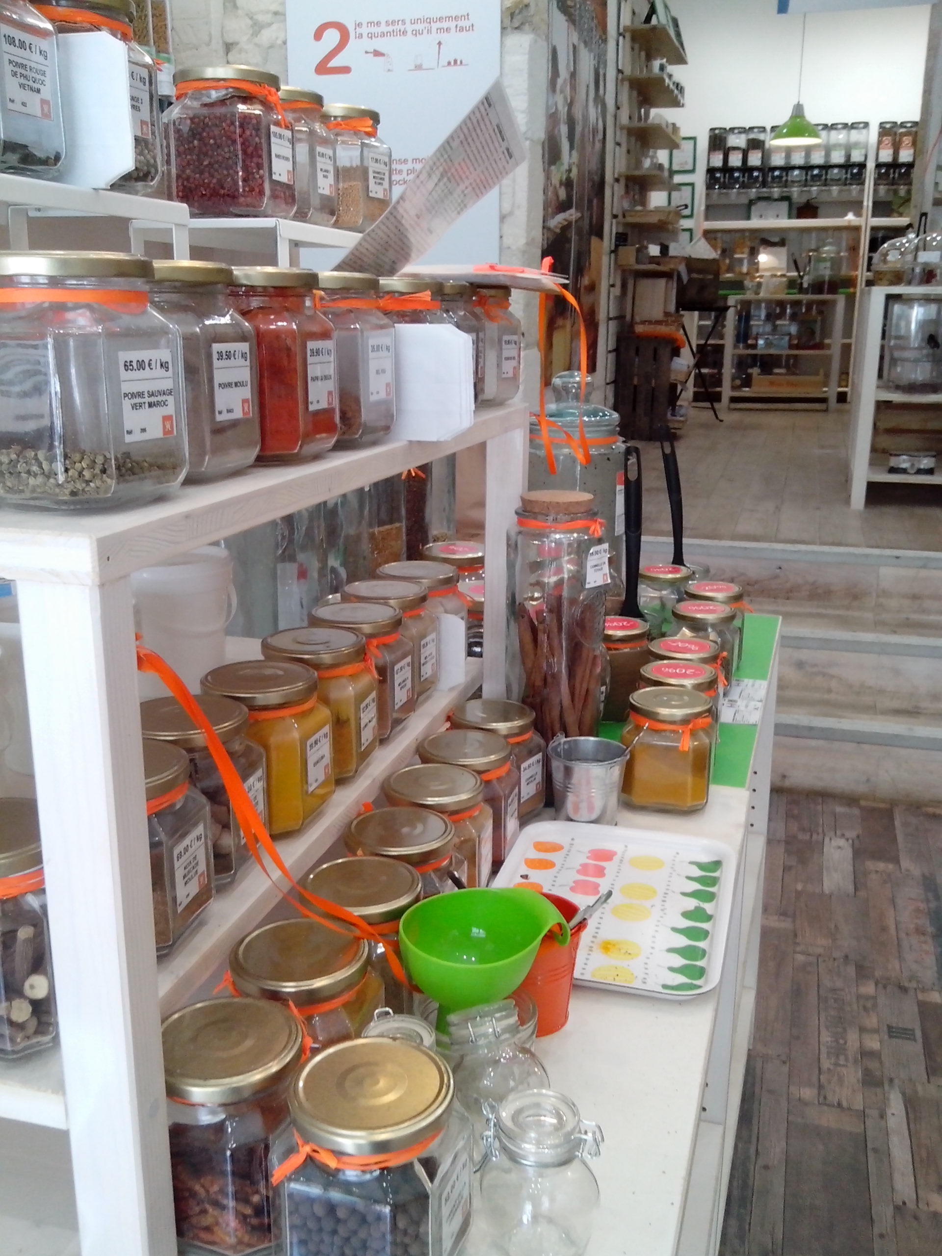 Comme à mon habitude, j’avais repéré les adresses vendant des produits alimentaires en vrac. Outre les magasins bio, il existe deux adresses où trouver de quoi remplir ses placards de cuisine en 100% vrac et local.