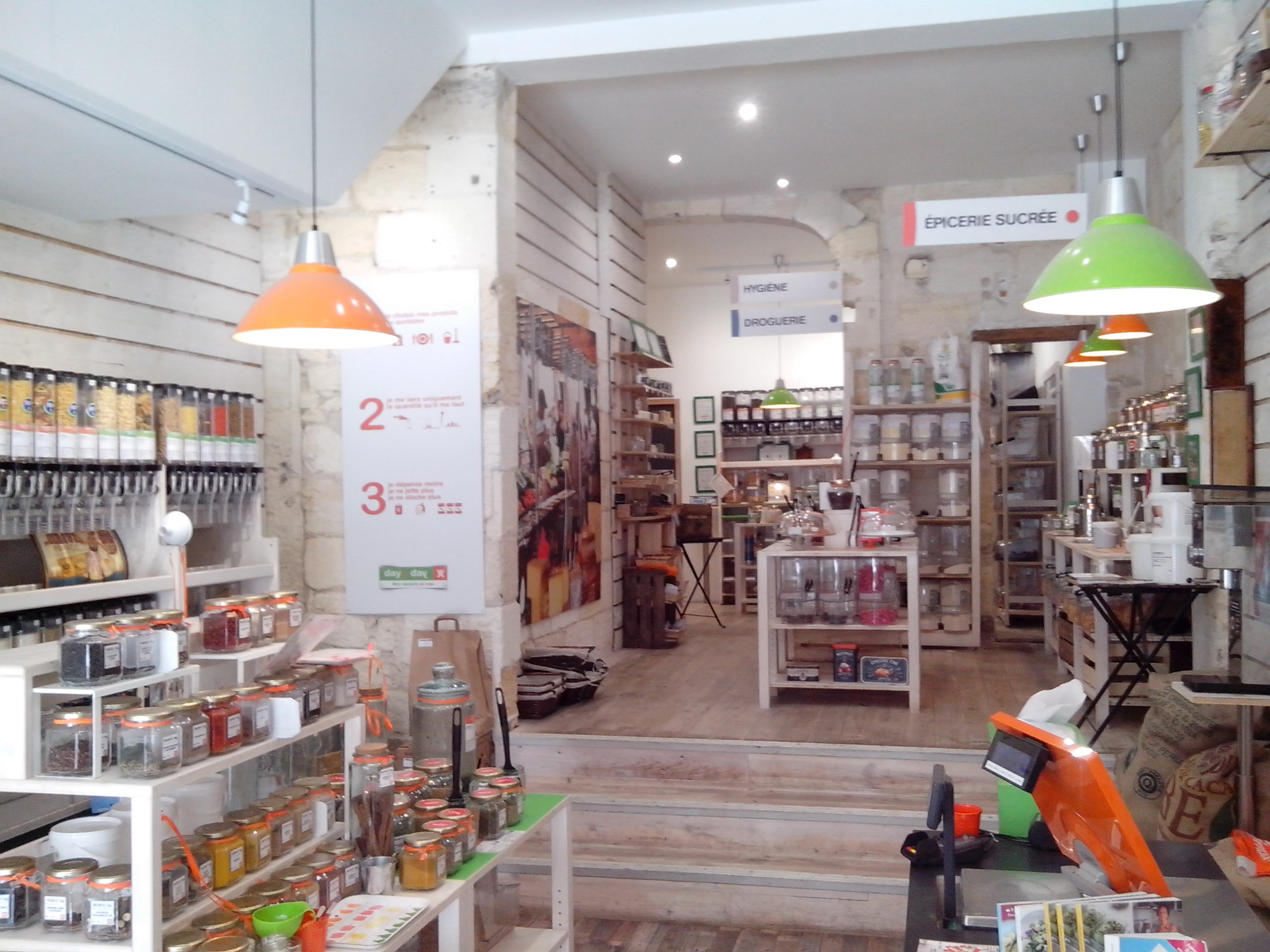 Après avoir déjeuner au buffet végétarien le Smart green corner rue Castelnau d’Auros. Super rapport qualité prix. Je suis allée faire mon petit tour. Il y d’abord l’enseigne Day by Day , rue Fondaudège . Tenue par le sympathique et bavard Eddy. Passionné par ce qu’il fait. Je ne suis pas repartie les mains vides, je me suis pris de quoi goûter, un sablé au sarrasin et des pêches déshydratées aromatisées au thym (trop bonnes!!)