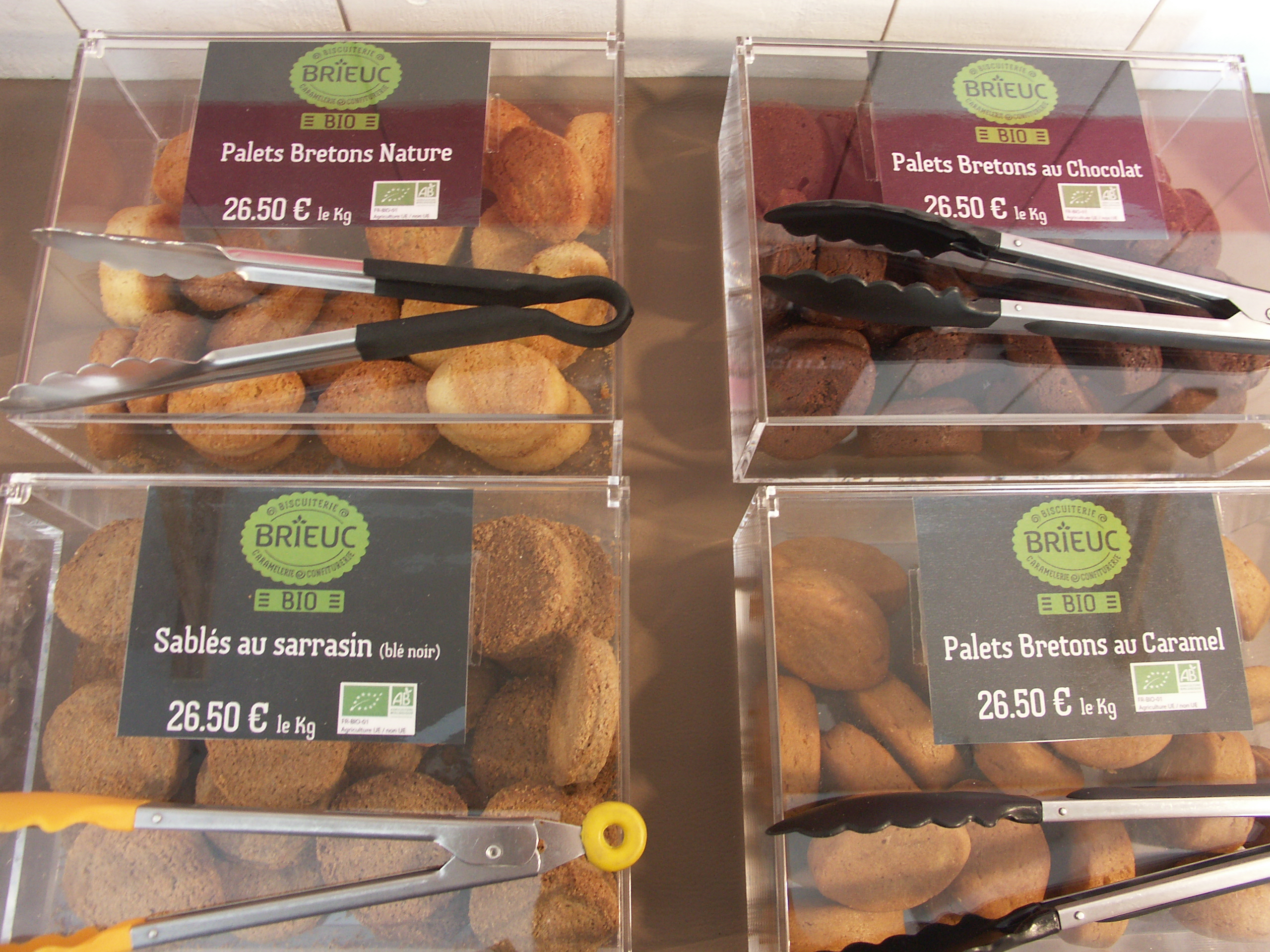 Leurs sablés au sarrasin font partis de mes gâteaux préférés. C’est bien gras et mes fesses ne me remercient pas pour ça ! Mais c’est très bon ! Et en plus, nous pouvons trouver leurs biscuits en vrac. J’ai l’impression que cette entreprise est assez importante (plus que les autres marques que je vous présente là) elle détient plusieurs petites boutiques dans des lieux touristiques, comme à Dinard, ou dans la vieille ville de Saint Malo. Où vous pourrez trouver toute leur gamme, bio ou non bio, sans gluten ou avec gluten. Ces biscuits se trouvent facilement en grandes surfaces. (Bien que l’idée n’est de faire fonctionner les grandes enseignes de distribution)