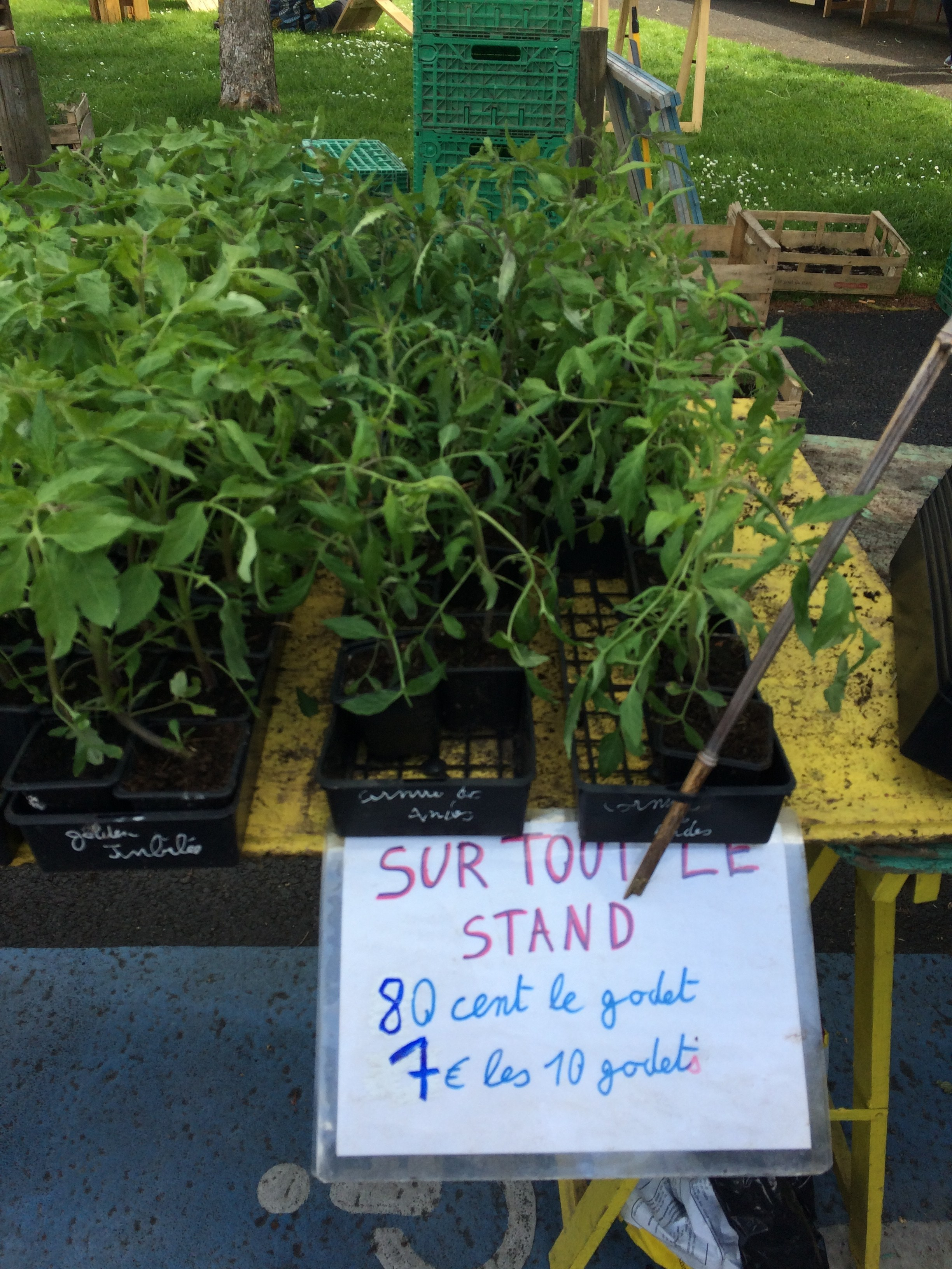 Et pour finir, quelques jours après Vert le jardin a organisé un vide jardin, où particuliers et professionnels pouvaient venir vendre des plants de leur jardin à des prix défiant toute concurrence. Ils y avaient également des créateurs utilisant la récupération comme On n’est pas que des cageots ( qui proposent des ateliers manuels) , des musiciens, des conférences, et un vide grenier. Une journée complète autour du partage et de l’amour de la nature. Je suis repartie avec un pied de sarriette qui m’a suivi jusqu’en provence , en attendant d’avoir mon propre jardin.