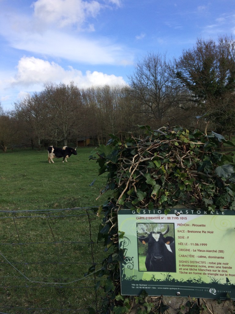 Un des éléments qui peut paraître atypique à Quimper, c’est qu’en longeant la rivière Odet qui traverse la ville, vous découvrirez à deux pas du centre ville….des vaches ! Des vaches et des moutons en milieu urbain. Un choix engagé de la commune depuis plus de 10 ans. « La ville de Quimper pratique l’éco-pâturage depuis 2008 sur une parcelle de 2,5 ha située à Locmaria. L’entretien des espaces verts et des espaces naturels par l’animal répond à un objectif de gestion différenciée et extensive des espaces verts. Ce mode d’entretien possède de nombreux avantages parmi lesquels la réduction des coûts d’entretien, la préservation de la biodiversité, l’absence de nuisances sonores ou encore la création d’espaces de vie paisibles.«