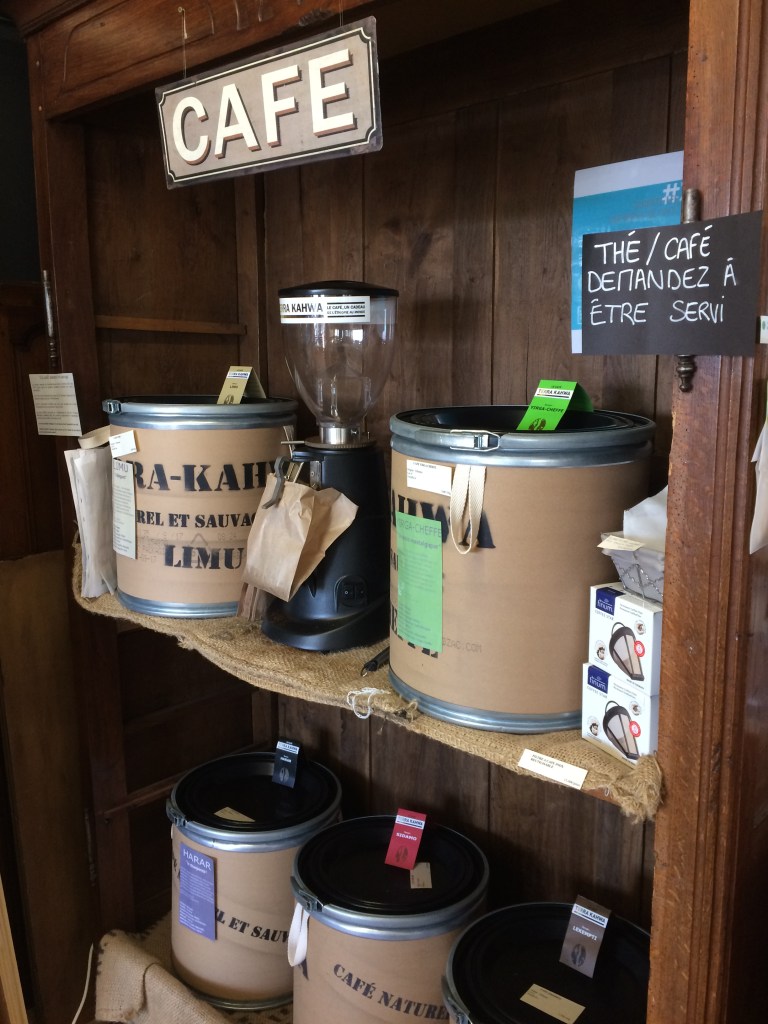 Alors oui, je vous entends me dire derrière votre écran : « Le café n’est pas local !! ce n’est pas cohérent ». Chaque boutique s’adapte aux demandent des clients, ça fait partie du jeu. Et ce café peut être cultivé et acheminé de manière éthique . Et j’estime que quand on fait des « efforts » dans son mode de vie au quotidien , il est important de se faire plaisir, sans s’en vouloir. (je vous en avais parlé ici : L’exception Marco Polo ). C’est pareil pour le thé, et les épices.