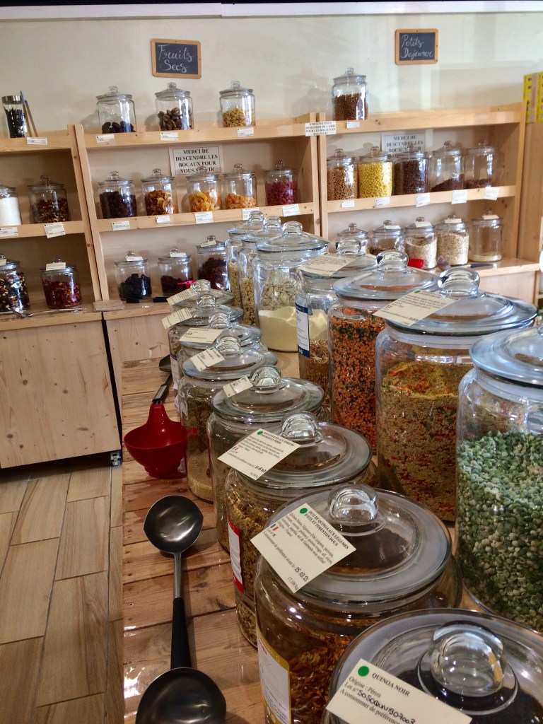 D’un point de vue des prix de manière générale, on pense souvent que le bio et le vrac sont très chers et inaccessibles. Il ne faut pas le nier cela peut être le cas , MAIS , il est prouvé qu’économiquement , il est plus intéressant d’acheter en vrac. Car ce mode de fonctionnement , nous pousse à acheter de manière raisonnée. Un des piliers du vrac est aussi la lutte contre le gaspillage. Il faut savoir que le gâchis alimentaire mondiale représente tous les ans , la taille de l’Himalaya. Quand on achète avec conscience, exactement la quantité dont on a besoin (puisque nous pesons nous même chaque aliment) , finalement le budget alimentaire n’explose pas. Et à part être tentés par des gourmandises faites localement de temps en temps, contrairement au super marchés où tout est calculé pour vous donner envie, et en particulier aux enfants, ou mis sous vos yeux pour que vous goutiez les derniers nouveaux gâteaux avec un super packaging. Cela m’étonnerait que vous vous sentiez dans une frénésie incontrôlée , ressortant avec un caddie plein de produits que vous n’aviez pas prévu d’acheter. De plus les aliments venant de petits producteurs locaux sont souvent plus accessibles financièrement. Chez La Terre native , ils font bien sûr attention d’ éviter le gaspillage, et vous trouverez des produits en dates courtes à sauver d’urgence, à prix réduits.