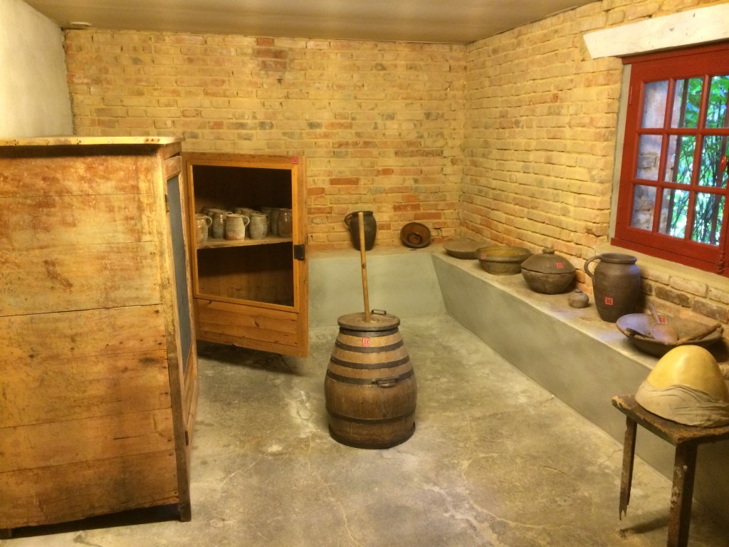Il est assez fascinant et un peu triste de voir comment la modernisation et le remembrement ont modifié le visage des campagnes en si peu de temps, tout en abaissant la pénibilité du travail . On découvre des machines agricoles, des vidéos, des vitrines qui nous éclairent sur le patrimoine agricole et rural de l’ouest de la France. J’apprécie particulièrement la cuisine reconstituée et son garde manger de 1866.