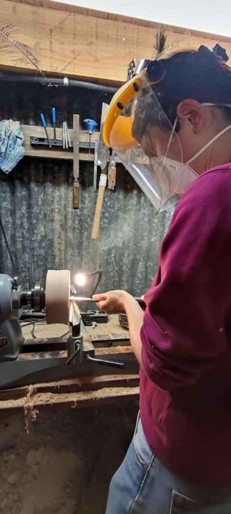 La vie est toujours pleine de surprises . C’est lors d’un fest noz que j’ai rencontré Guillaume. Après lui avoir montré quelques pas de danse, il m’apprend qu’il travaille le bois . « Regarde sur instagram ce que je fais, le Bois du loup et n’hésite pas à passer à l’atelier ! » Le temps s’écoule mais je n’oublie pas cette discussion, je regarde ses réalisations en tournage de bois, je suis fascinée. Et dans mon envie continuelle d’apprendre , de tester de nouveaux savoir-faire , je décide de m’offrir une journée à apprendre à ses côtés.