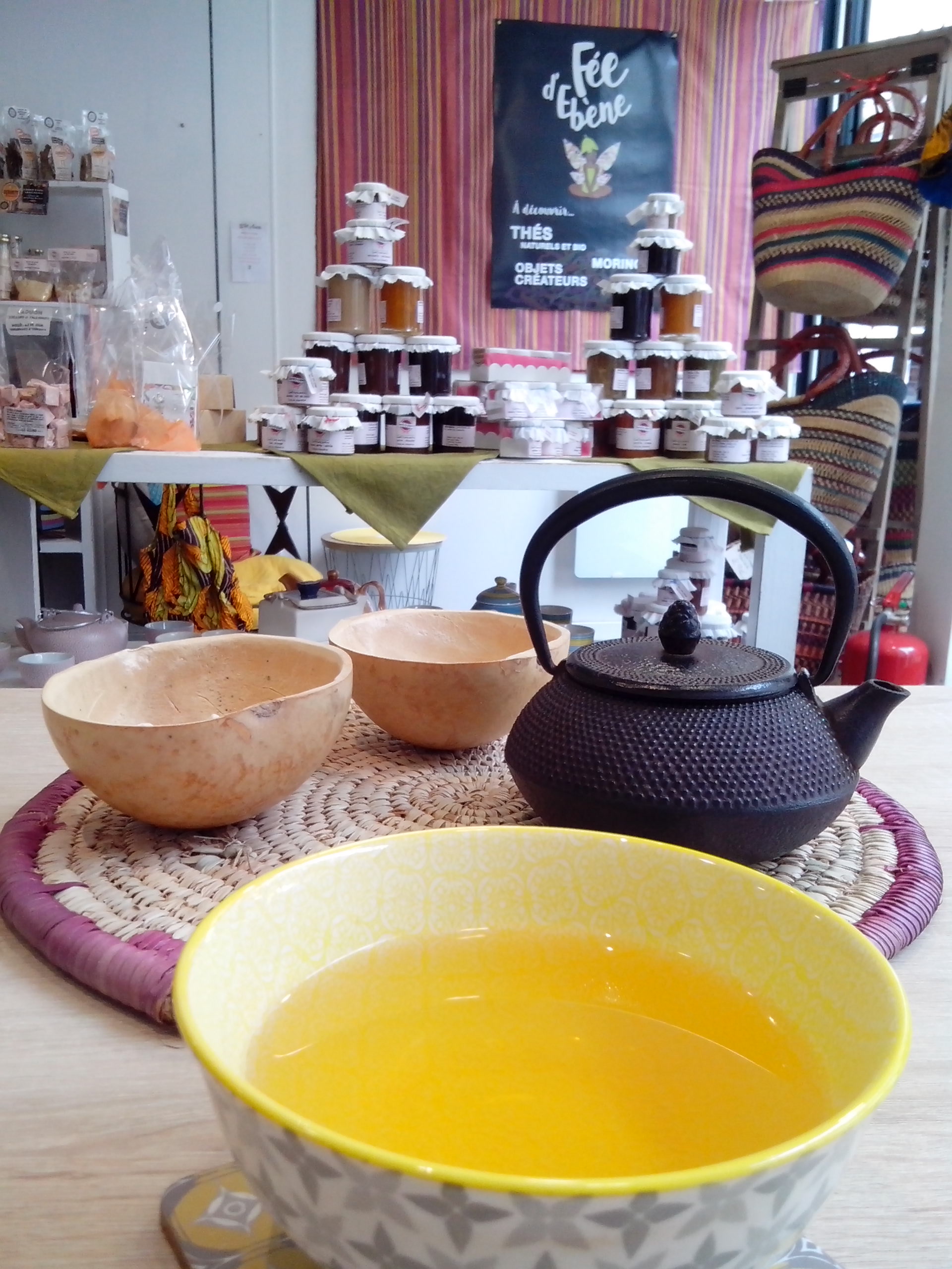La fée d’ébène (rue carnot) est un salon de thé bio, magasin de créateurs locaux et du Burkina Faso, où l’on peut également trouver des friandises du coin. Donc tout ce que j’aime ! J’y ai dégusté des biscuits sans gluten locaux, avec une tisane…de légumes ! oui vous avez bien lu, cela m’a intrigué, je voulais donc tester. Un gout nouveau, atypique, mais très agréable. Et pour ma plus grande chance, ce jour là, il y avait une formule proposée : massage + thé. Ayant du temps avant de me rendre sur mon lieu d’hébergement, j’en ai profité pour me faire chouchouter.