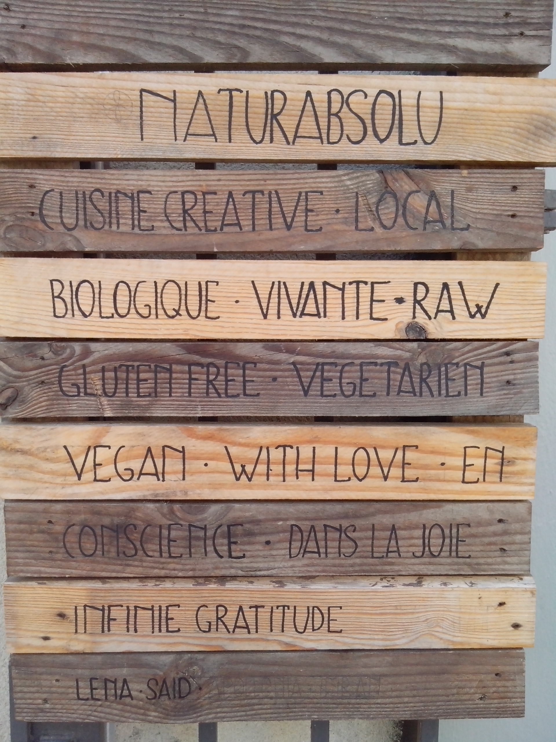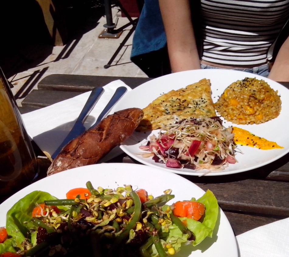 Sur le chemin en allant à l’abbaye, nous avions repéré le restaurant parfait (enfin pour moi) vegan, bio, local, sans gluten et tout le toutim. Appelé Naturabsolu .Donc nous avons déjeuné là , et quel régal !!! Encore une belle adresse, découverte au hasard.